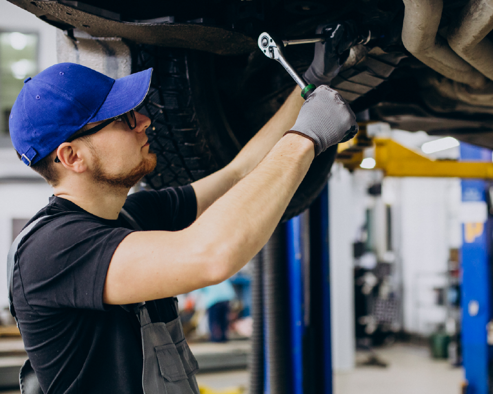 Kontrolle, Einstellung und Wartung von Fahrwerk und Achsen für sichere Fahrt und Fahrstabilität.
